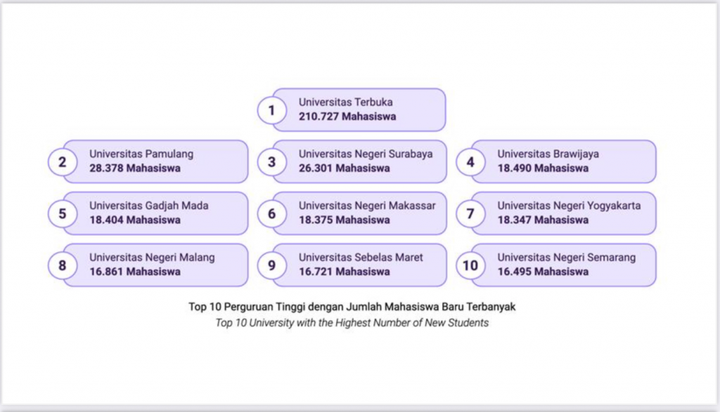 PTN dengan model PTNBH mengalami transformasi menyimpang dari orientasi kualitas menuju ranking global menjadi industri kursus kuliah massal. Penerimaan mahasiswa baru PTN semakin menggila, satu kali penerimaan mahasiswa baru bisa mencapai 26 ribu setahun, seperti UNESA. PTN semakin berfungsi sebagai penyerap lulusan SMA secara masif, bukan produsen ilmu pengetahuan. Seperti terlihat dari gambar ini satu kali tarik Unesa menerima 26 ribu mahasiswa, UB 18,5 ribu mahasiswa, UGM 18,4 ribu mahasiswa. Fenomena ini baru setelah PTN dan PTNBH harus mencari pendapatan sendiri dan mengerahkan tenaga menerima mahasiswa baru dalam jumlah sangat fantastis.
