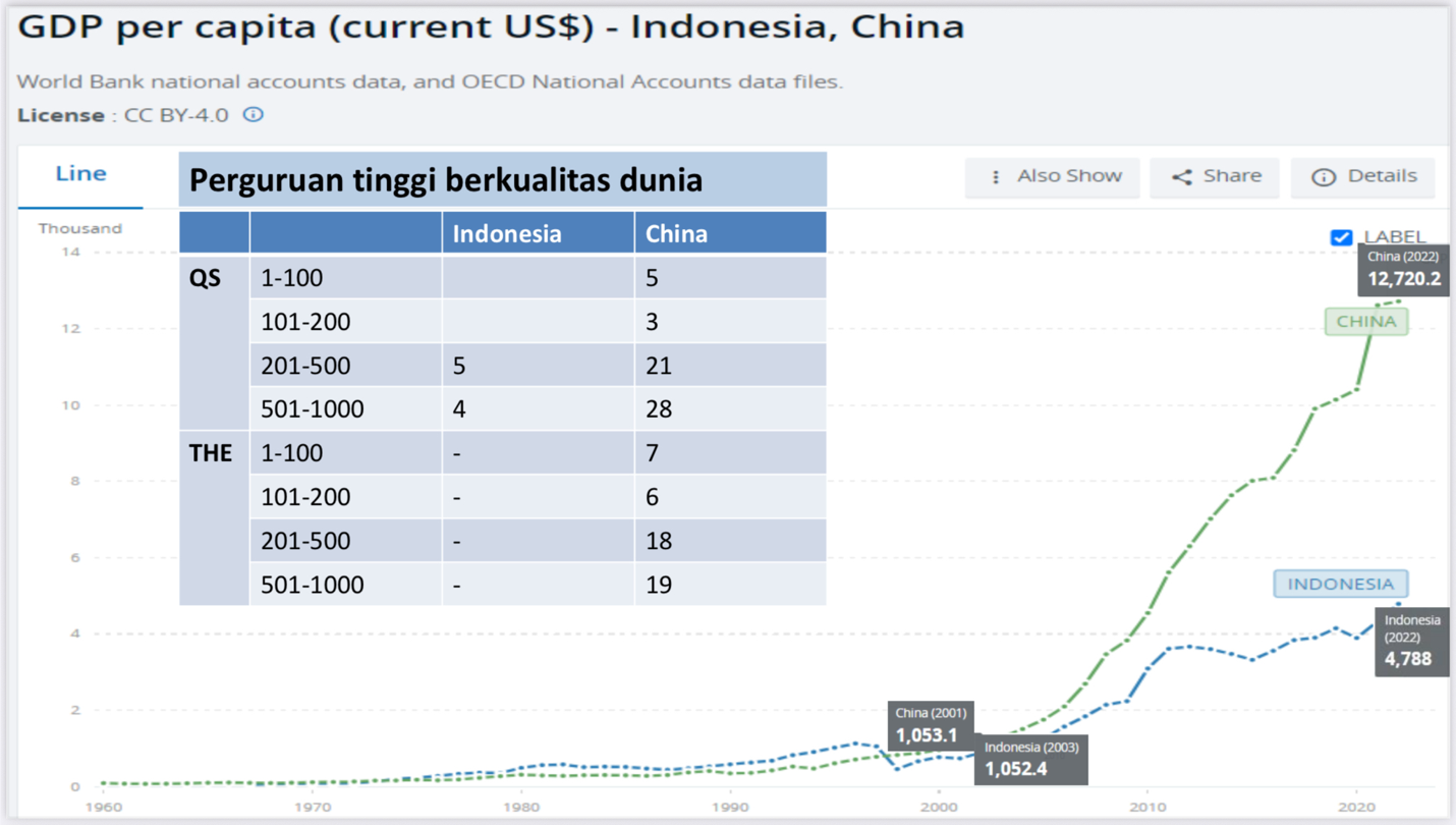 - Indonesia gagal membangun universitas kelas dunia,