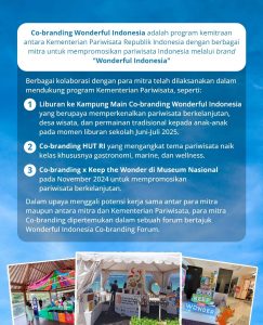 “Program tersebut telah berkolaborasi dengan berbagai jenama dari beragam industri untuk mendukung kemajuan pariwisata Indonesia,” kata Firnandi Gufron.